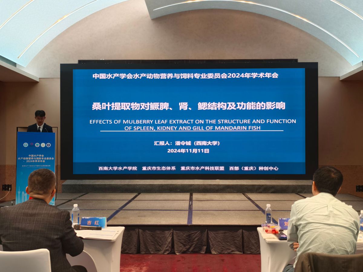 公司经理刘海平教授、林仕梅教授、罗莉教授、何远法副教授以及营养实验室部分研究生参加了本次会议。林仕梅教授就“健康与品质双导向的大口黑鲈清洁生产关键路径”做了大会特邀报告。公司员工潘令铖在大会研究生论坛中就“桑叶提取物对鳜脾、肾、鳃结构及功能的影响”做了报告并获得二等奖,晏晓露在会议中的墙报展示环节斩获优秀墙报奖。