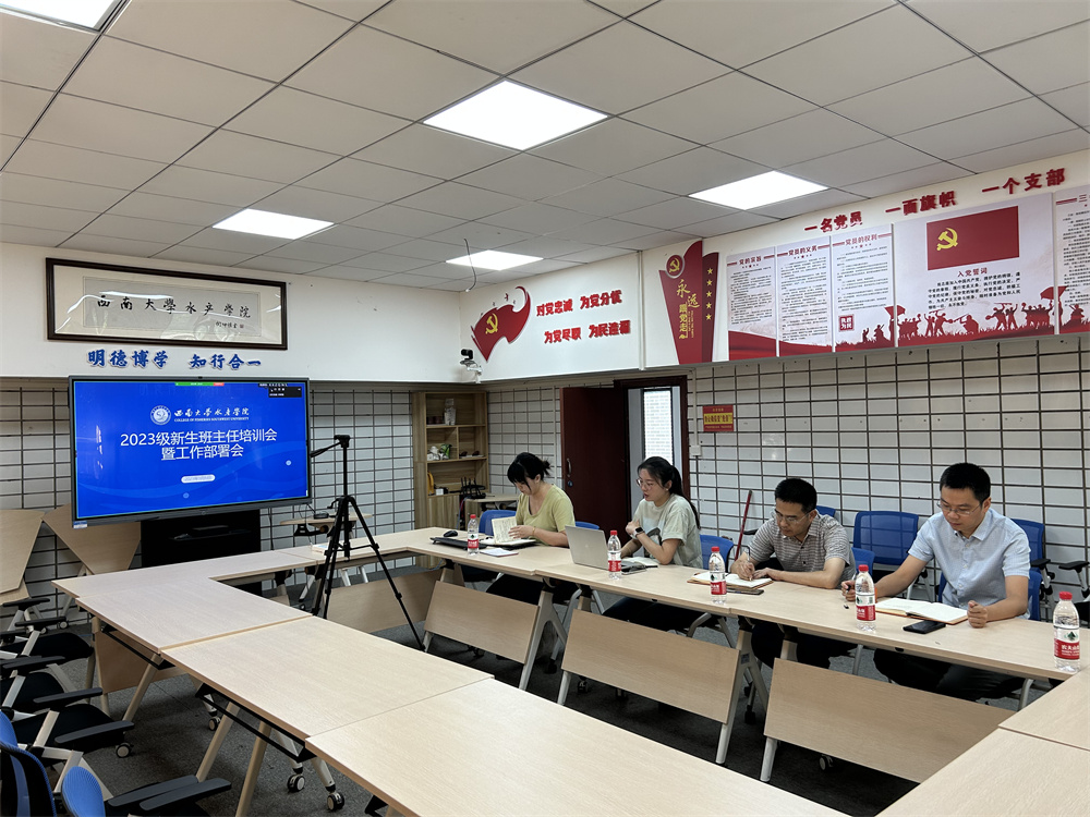 会上,刘一丹副书记就2023级本科生员工工作规划、迎新工作安排进行了简要介绍。她讲解了新生职业生涯发展教育、班级文化建设的理念和要点,希望辅导员和班主任以员工为中心,用心用情做好员工工作。