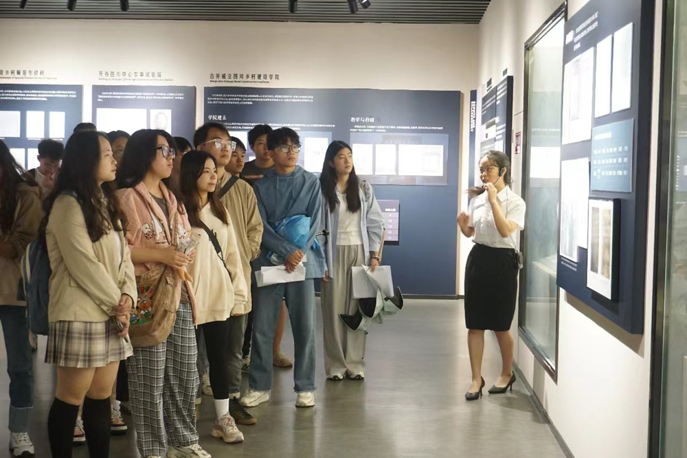 进入校史馆,跟随讲解员的脚步,一幕幕满载历史回忆与成绩的画卷呈现在新生面前,一百多年的风雨历程与峥嵘岁月,使在场新生感受到了公司深厚的历史积累、丰硕的办学成就和拼搏的奋进精神,更加增强了对公司的归属感、认同感及自豪感。两校合并,不仅仅是老师和员工,更是制度与文化的碰撞,樟树绿荫环绕,玉兰花沁人心脾,师生时刻心存校训,行于学习与生活。新生们仔细听讲,认真学习,久久驻足,备受鼓舞,随之涌上心头的是生为西大学子的骄傲与自豪。