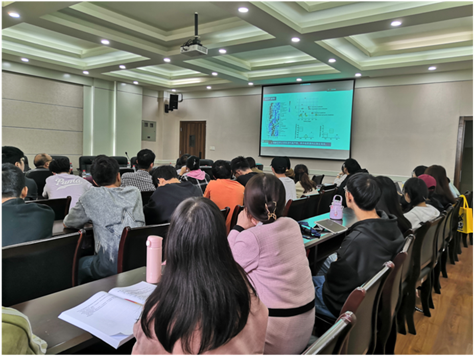 张美玲教授针对目前饲料蛋白质资源紧缺的问题,首先向师生们分享了其团队以浓缩棉籽蛋白作为新型饲料蛋白源替代鱼粉的故事。随后,探讨了其中的抗营养因子棉酚对鱼类的抗营养作用以及对肠道微生物组成及代谢物水平的影响,并向师生们介绍了其团队提取的肠道益生菌菌株在修复肠道损伤方面的积极作用和可能的作用机制等。此次分享开拓了同学们的视野,激发了同学们的科研兴趣,收获颇丰。