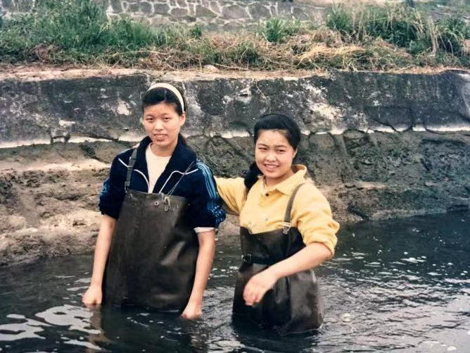 祁洪芳(右二)在求学时参加生产实践的照片 唐洪玉提供