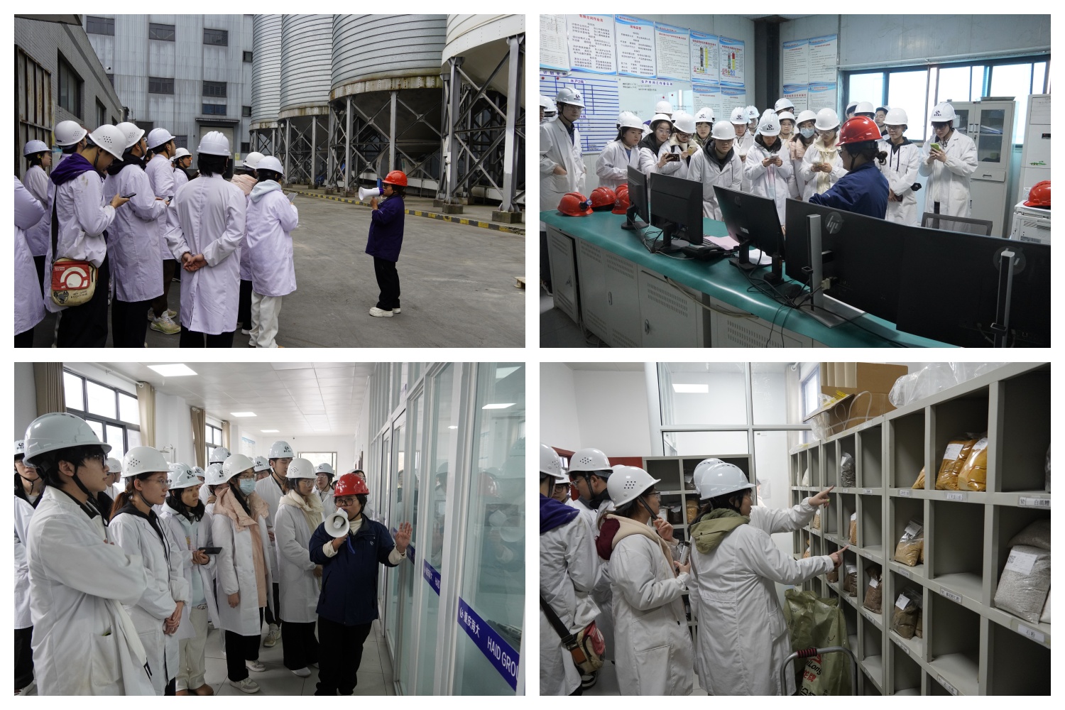 在企业工作人员的全程引导下,同学们沿着原料处理、电脑精准配料、混合搅拌、颗粒制粒冷却、成品包装的完整生产线有序参观,近距离观察粉碎设备、混合机组、制粒机等核心装置的运作原理,详细观摩生产各环节的质量控制标准与工艺参数。从生产车间到化验室里的实验操作,同学们将理论知识与生产实践逐一对应,真切感受到现代农业企业的机械化精准度与标准化管理水平。