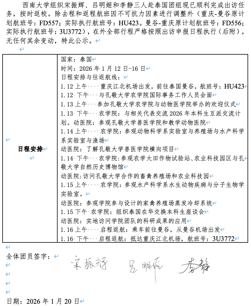 经审核,现将宋振辉、吕明姬和李静三人赴泰国团组出访期间日程安排表单位公示如下: